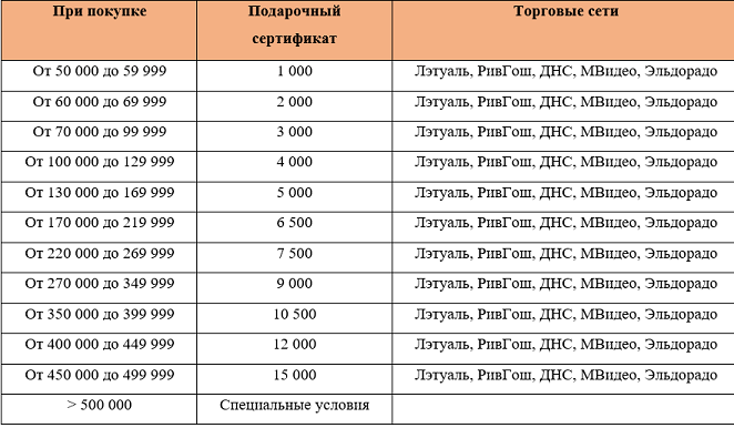 - При покупке на сумму от 37 000 до 42 999 рублей
