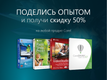 Поделись опытом и получи скидку 50% на любой продукт Corel