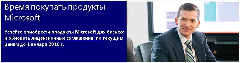 Компания Microsoft регулярно обновляет портфель продуктов, снабжая их расширенным функционалом, отвечающим потребностям бизнеса. Мы рады представить вам возможность преобрести продукты Microsoft и обновить ваши лицензионные соглашения по текущим ценам до 1 января 2016 года.