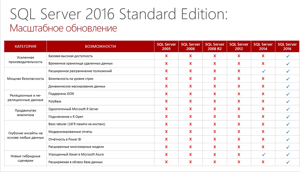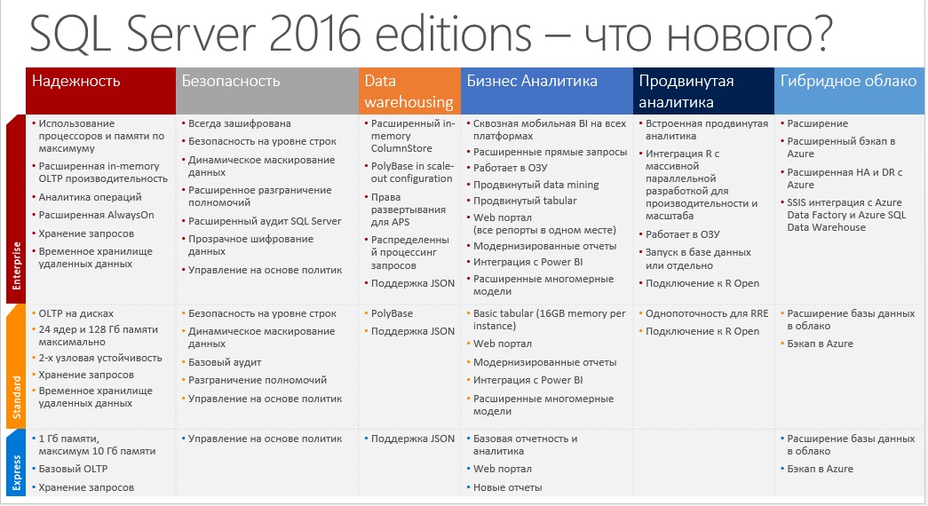 Ознакомьтесь с полным списком нового функционала в SQL Server 2016