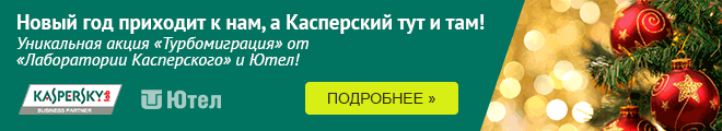 В связи с уникальной акцией наша компания «Ютел» также объявляет акцию: переходи на продукты «Лаборатории Касперского» с любых других антивирусных продуктов и, даже c бесплатных до 31 декабря по специальным условиям и получай подарки от компании «Ютел»!