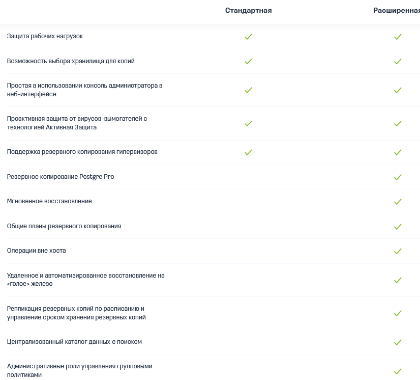 25+ поддерживаемых платформ, включая ОС, гипервизоры и приложения, в том числе отечественные системы Альт Линукс, Astra Linux, Ред ОС, Роса, а также Postgres Pro, PostgreSQL и Jatoba