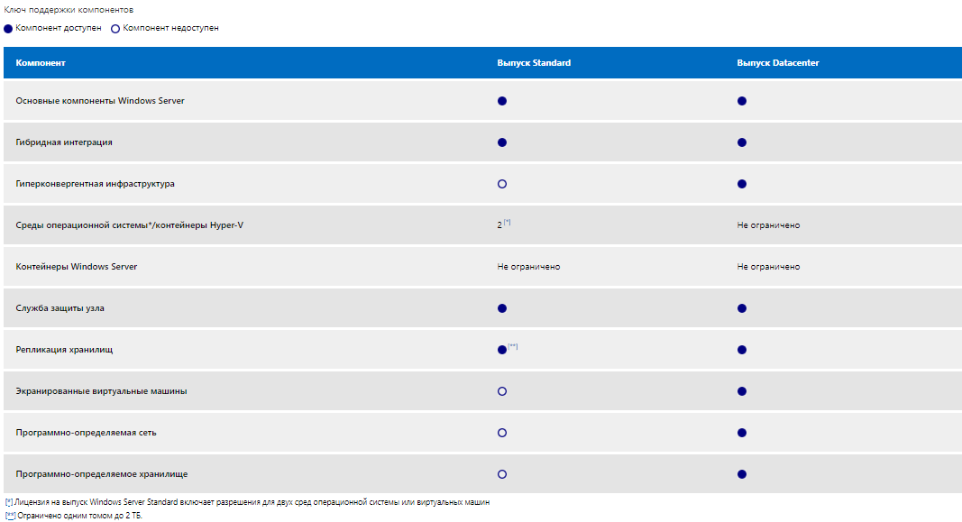 Сравнение функций в версиях Windows Server Вы можете узнать здесь.