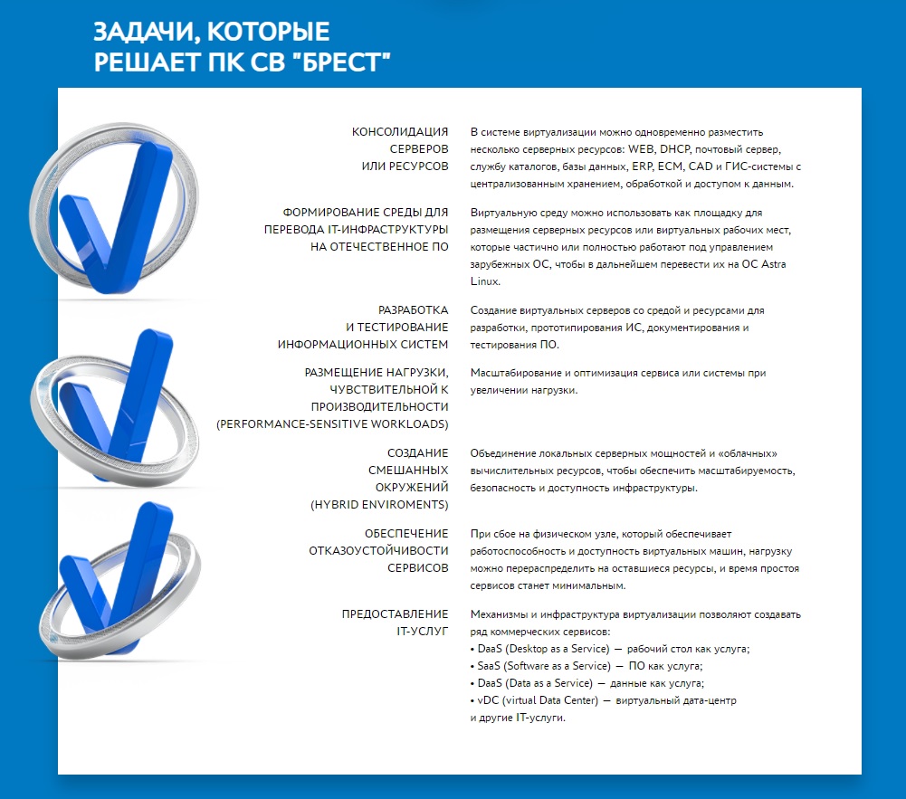 ПК СВ «БРЕСТ» ОБЕСПЕЧИВАЕТ ФУНКЦИОНИРОВАНИЕ СИСТЕМЫ ВИРТУАЛИЗАЦИИ ASTRA LINUX И ПОЗВОЛЯЕТ: