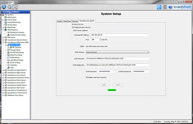 Благодаря интеграции с имеющимися сервисами Active Directory и LDAP, системный администратор можетнастраивать права и привилегии пользователей exacqVision в соответствии с их существующими учетнымизаписями в Active Directory. Для организации, в сети у которых имеются данные службы, нетнеобходимости в специальной настройке пользователей, так как их учетные записи уже созданы.