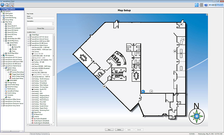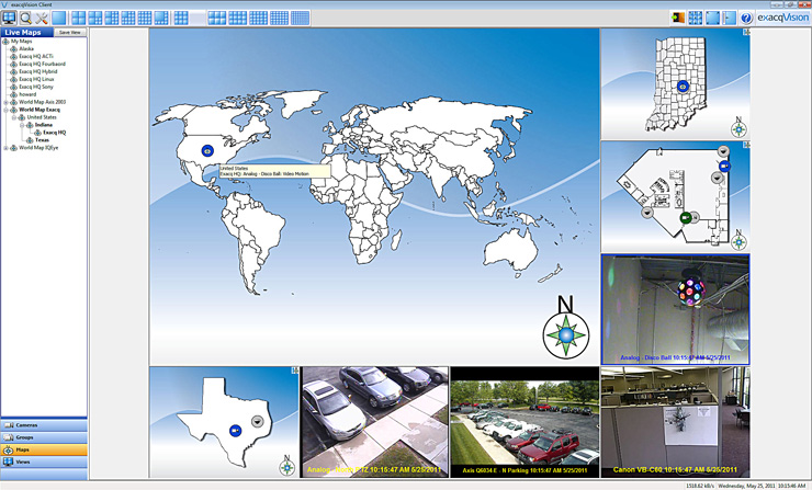 exacqVision Enterprise позволяет использовать несколько уровней вложенных карт. Например, это можетбыть карта кампуса, в которую вложены карты отдельных зданий, уровнем ниже — корпуса, затемотдельные этажи и секторы. Оповещения о событиях, которые должны отобразиться на картах нижнегоуровня, всплывают на верхний открытый уровень.